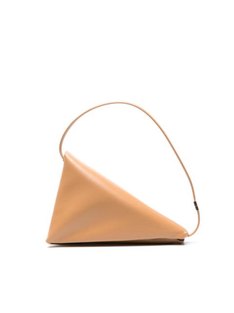 PrismaTriangle shoulder bag Playing with geometry for its AW23 bag line, Marni presents this light blue shoulder bag. Crafted from smooth calf leather with a triangle shape, the piece features a detachable shoulder strap and is subtly detailed with a debossed logo on the rear. Highlights - Blue - Calf leather - Smooth grain - Triangle shape - Logo stamp to the rear - Foldover top - Slide-lock fastening - Single shoulder strap - Logo-engraved gold-tone hardware - Faux-leather lining - Zip fastening - Internal logo stamp - Partitioned compartment Made in Italy Composition Outer: Calf Leather 100% Lining: Cotton 55%, Polyurethane 45% SIZE & FIT Model measurements Height 5 ft 9 in(1.76 m) Bust/Chest 31.88 in(81 cm) Hips 35.43 in(90 cm) Waist 24.8 in(63 cm) Measurement DEPTH 4.33 in(11 cm) HEIGHT 7.48 in(19 cm) STRAP 7.48 in(19 cm) WIDTH 11.41 in(29 cm)