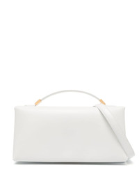 Prisma padded leather bag from Marni featuring white, calf leather, smooth grain, padded design, logo stamp to the rear, gold-tone hardware, single flat top handle, adjustable detachable shoulder strap, foldover top with magnetic fastening and partitioned compartment. Size & Fit Model Measurements: Bust: 78cm Height: 178cm Hips: 92cm Waist: 65cm DEPTH: 11cm HANDLE: 6cm HEIGHT: 14cm STRAP: 47cm WIDTH: 32cm Fabric and Care Designer Style ID: BMMP0130U0P6039 Designer Colour: 00W01 WHITE Composition: Outer: Calf leather 100%, Brass 100%; Lining: Polyurethane 45%, Polyester 100%, Cotton 55%Made in Italy