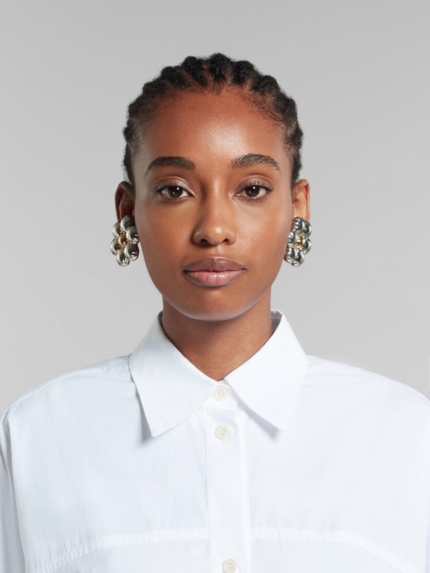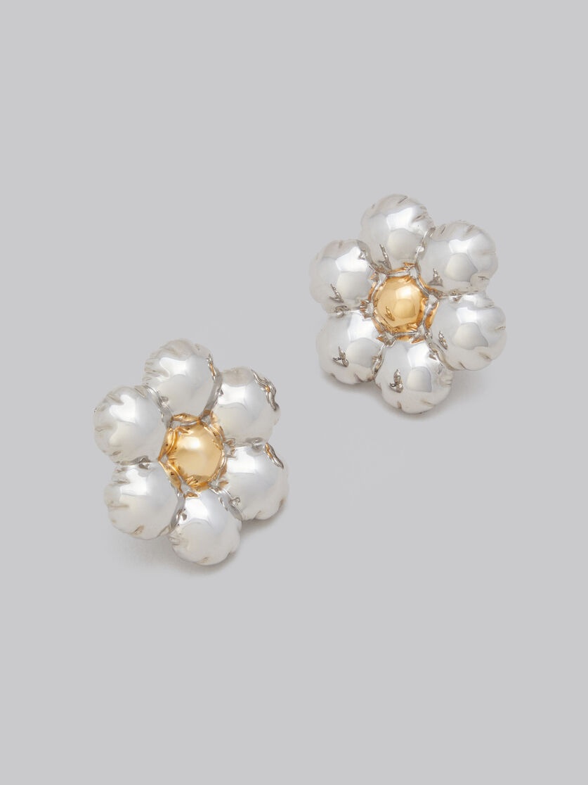 Varnished metal earrings. Oversized puffy-effect flower design. Palladium finish. Made in Italy.