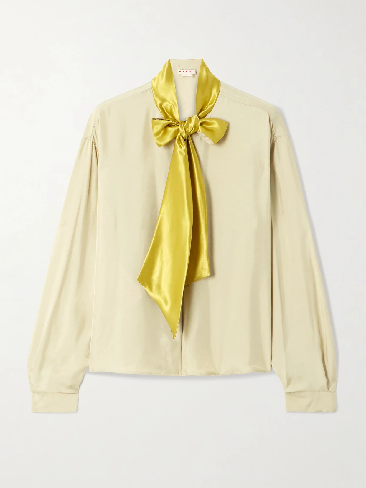 Marni's blouse is topped with a gold pussy-bow neckline, bringing modern glamour to an everyday staple. It's cut from satin-twill in a versatile beige shade and has floaty blouson sleeves. Tuck yours into a pencil skirt or jeans.