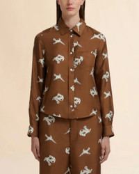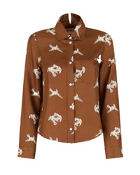 The Ravens Silk Twill Printed Blouse by Marni features a button front placket, button cuffs, and chest pockets crafted with an all-over raven print. Perfect for office wear into happy hour. Material: 100% Silk Woven Details: Silk twill shirt with point collar and long sleeves. Fit: True to size Style it with: Matching trouser for a coordinated set. Style # CAMA0661S1UTSG38RAM29 Made in Italy