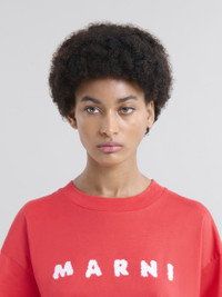 RED BOXY T-SHIRT WITH MARNI SCRIBBLED LOGO