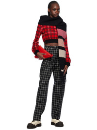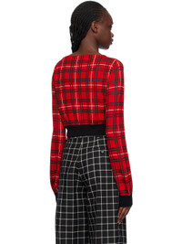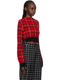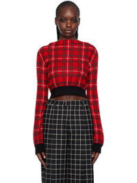 Knit virgin wool sweater. Jacquard check pattern throughout. · Boat neck · Rib knit cropped hem and cuffs · Vented side seams · Bishop sleeves Supplier color: Red