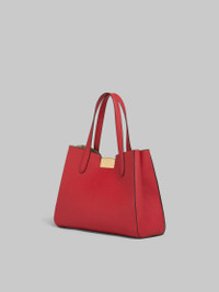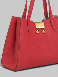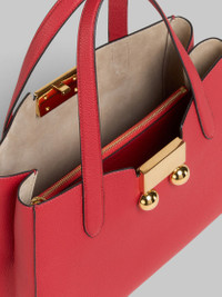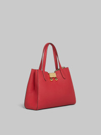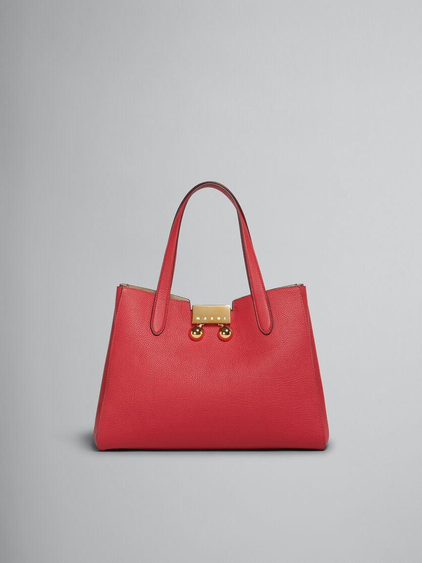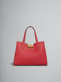 Trunkaroo Tote bag made of pebbled calf leather. Small size. Double handle and adjustable, removable leather shoulder strap. Oversized magnetic closure featuring engraved Marni lettering and two visually impactful metal stud details. Accordion-style design with suede interior and central zip pocket. Gold hardware. This product is made using leather from a Leather Working Group medalled tannery. LWG supports more responsible leather manufacturing across the globe. Made in Italy MODEL BMMP0150U0P818500R69 COMPOSITION Body: 100% Calf Leather - Contrast: 100% Calf Leather - Inside: 100% Calf Leather - Lining: 100% Calf Leather - Metallic Parts: 100% Zama - Metallic Parts: 100% Brass - Metallic Parts: 100% Steel