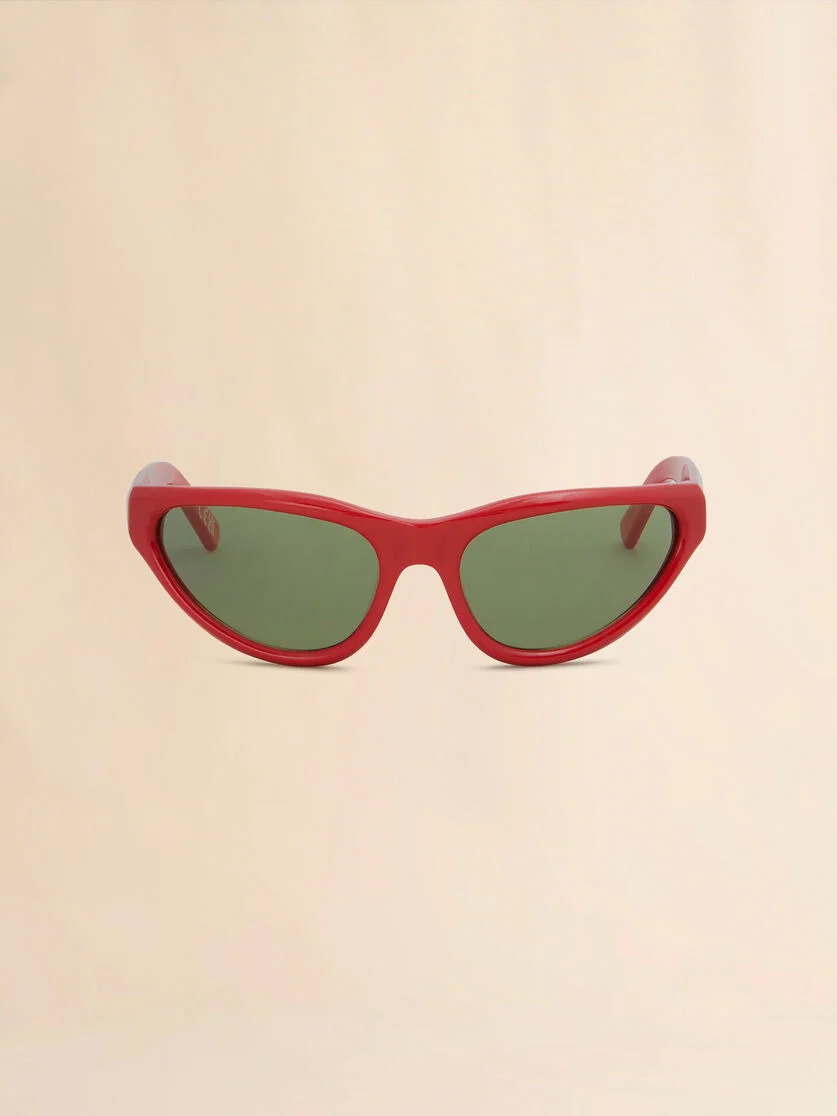 Mavericks sunglasses featuring a curved mask shape in red acetate. Temples with Marni logo. Green lenses. Made in Italy MODEL EWME0043A0H360005I8U COMPOSITION T1 100% AC