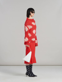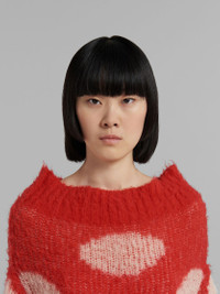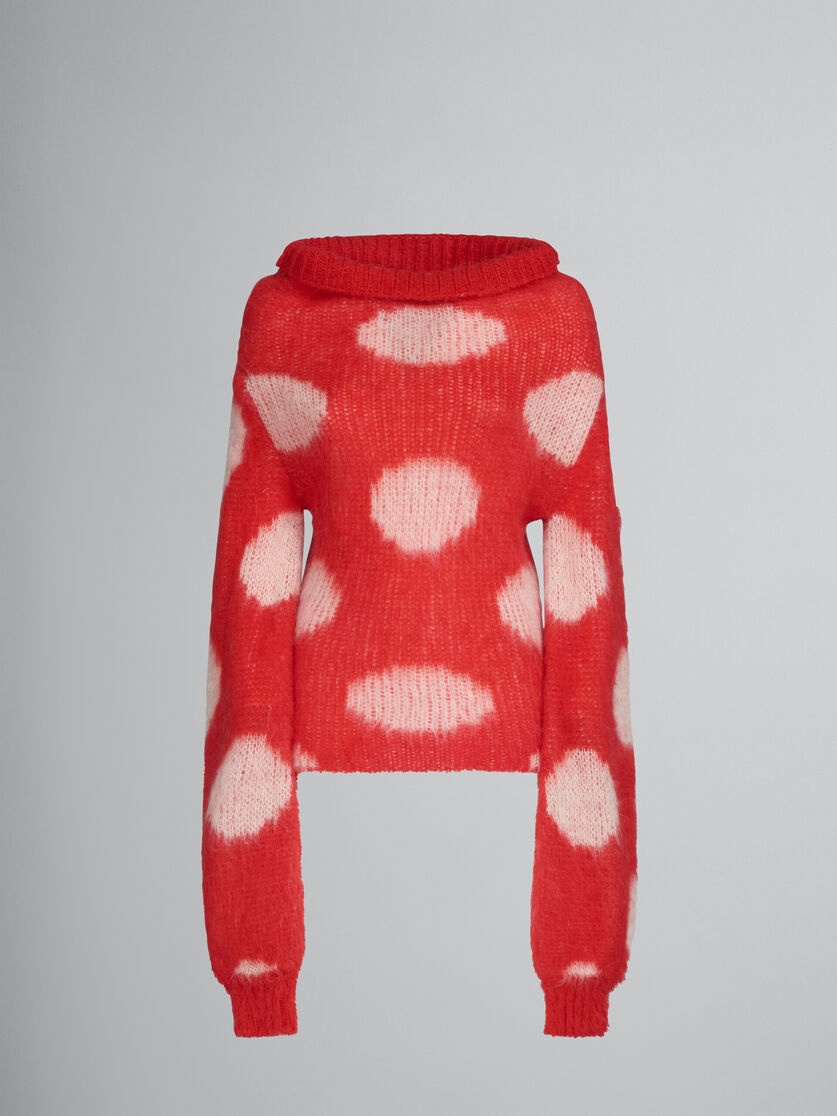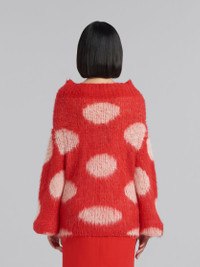 RED MOHAIR BOAT-NECK JUMPER WITH POLKA DOTS