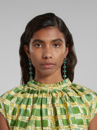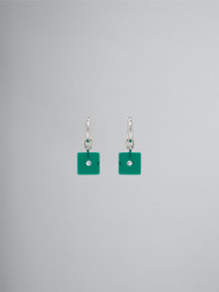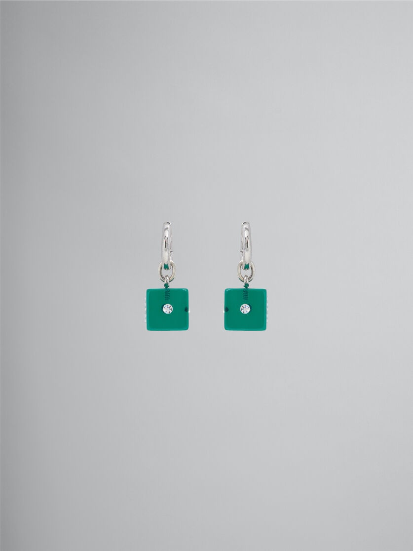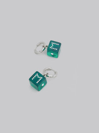 Hoop earrings with single clear resin dice pendants. Embellished with rhinestone numbers and M initials. Made in Italy. DETAILS COMPOSITION Body: 100% Brass - Application: 100% Polyester - Application: 100% Glass