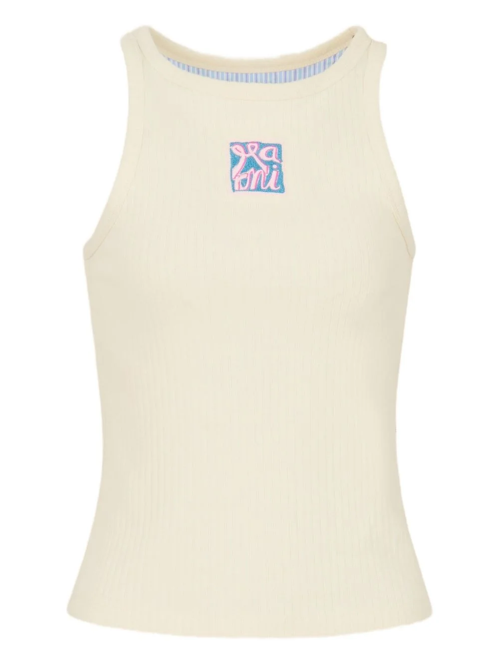 ribbed embroidered tank top Highlights - Light yellow - Ribbed knit - Embroidered logo - Round neck - Sleeveless Imported Composition Cotton 100% Washing instructions Read Manufacturer Guidelines