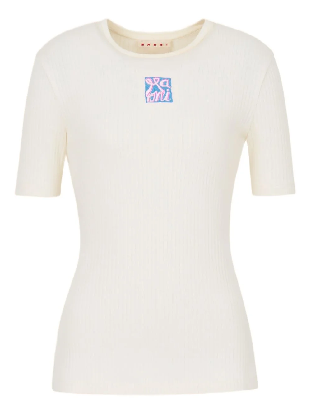 ribbed logo-embroidered T-shirt Highlights - Cream white - Ribbed knit - Crew neck - Short sleeves - Embroidered logo Imported Composition Cotton 100% Washing instructions Read Manufacturer Guidelines