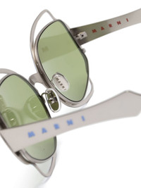 Route Of The Sun oversize-frame sunglasses Highlights - Amethyst purple - Metal - Oversize frame - Cut-out detailing - Green tinted lenses - Uv-protective lenses - Nose pads - Logo-debossed arm - Sculpted arms - Curved tips - These glasses come with a protective case. Made in Italy Composition Metal 100% SIZE & FIT Measurement Arm Length 5.7 in(14.5 cm) Bridge Width 0.78 in(2 cm) Lens Diameter 2.24 in(5.7 cm) Total Width 5.9 in(15 cm)
