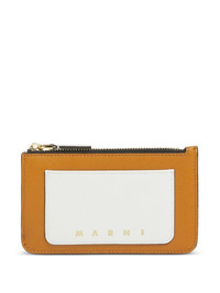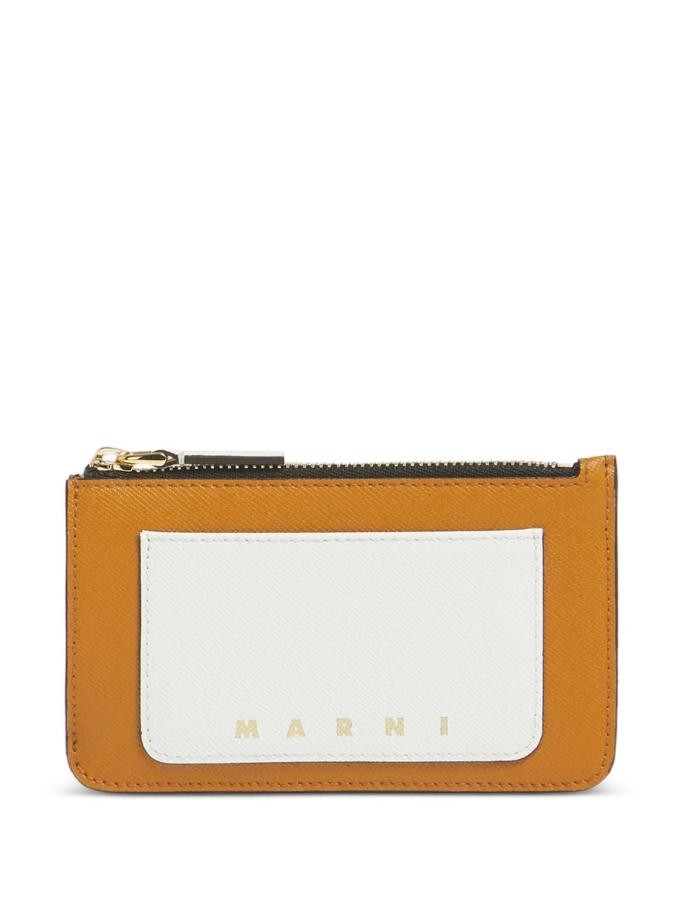 saffiano-zipped cardholder Highlights - Mustard yellow - Saffiano leather - Three contrasting tones - Zip coin pocket - Four rear card slots - Logo print Made in Italy Composition Outer: Calf Leather 100%