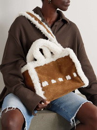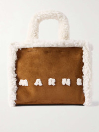 EDITORS'NOTES Marni updates its signature 'Basket' tote in fluffy shearling for the new season - even the label's moniker is made from the fuzzy material. It has plenty of space inside for your sunglasses, wallet and phone plus a zipped pocket to keep smaller items - like mints and hair ties - secure. Attach the shoulder strap to go hands-free. SIZE & FIT This item’s measurements are: - Min. Strap Length: 12cm / 4.7in - Height: 26cm / 10.2in - Width: 34cm / 13.4in - Depth: 16cm / 6.3in DETAILS & CARE - White shearling, brown suede (Lamb) - Two top handles, detachable shoulder strap - Internal zipped pocket - Unlined - Push-stud fastening at open top