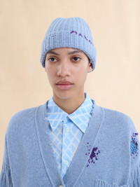 BLUE SHETLAND WOOL BEANIE WITH MARNI MENDING