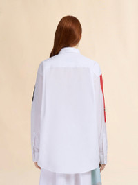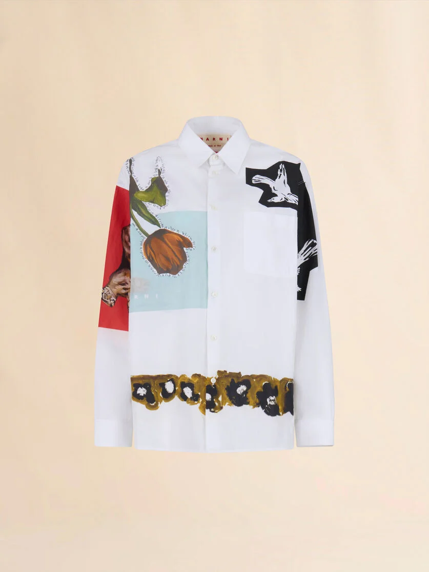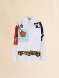 Long-sleeved cotton poplin shirt, featuring prints and patches that embody creativity and individuality. Hand-embroidered Marni Mending. Oversized yet structured silhouette with chest pocket. Part of the Artists’ Capsule Collection: an exclusive collab between Creative Director Francesco Risso and artists Soldier Boyfriend and Olaolu Slawn. Made in Italy MODEL CAMA0505SXUSCY2900W01