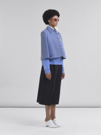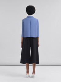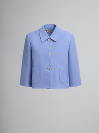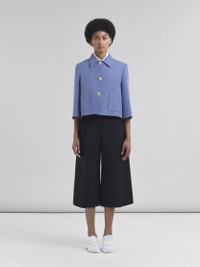 Cotton cady cropped jacket with an A-line silhouette, shirt collar, 3/4 sleeves and patch pockets. A back pleat and hand embroidered Marni Symbol complete the design. Made in Italy MODEL GIMA0281S0TCX2800B26 FIT The model is 5' 9''. The model is wearing size 40 IT. COMPOSITION Primary Fabric: 100% Cotton Woven - Pocket Lining: 100% Viscose-Rayon Woven