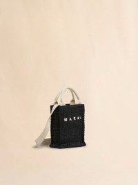 Basket shopper made from woven raffia-effect fabric. Mini size. Tape top handles and shoulder strap. Embroidered Marni logo. Ecru drill lining with logo applique. Made in Italy MODEL SHMP0145U0P3860Z1Q44 COMPOSITION Body: 52% Cotton 48% Polyamide-Nylon - Contrast: 97% Cotton 3% Polyester - Contrast: 100% Calf Leather - Lining: 95% Cotton 5% Acrylic