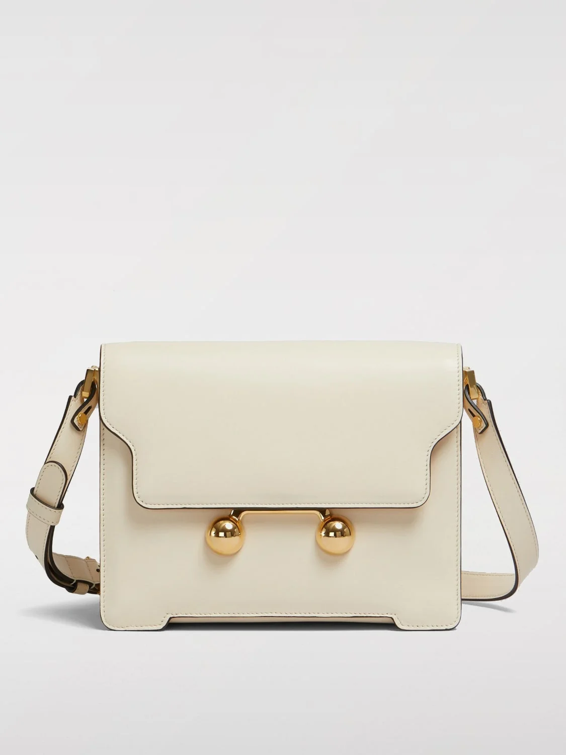 DESCRIPTION - Lining: With laminated logo - Model: Crossbody - Closure: With button flap - Shape: Rectangular - Shoulder strap: Leather - Materials: Smooth calfskin - Pattern: Plain-colored DETAILS AND CARE Composition 100% Pelle SIZE AND FIT Sizes Width : 22 cm Height: 15 cm Depth: 9 cm Designer code: SBMP0195U0P6948 00W12 Giglio Code: G59472 Designer: Marni Collection: Marni Woman Category: Bags Marni