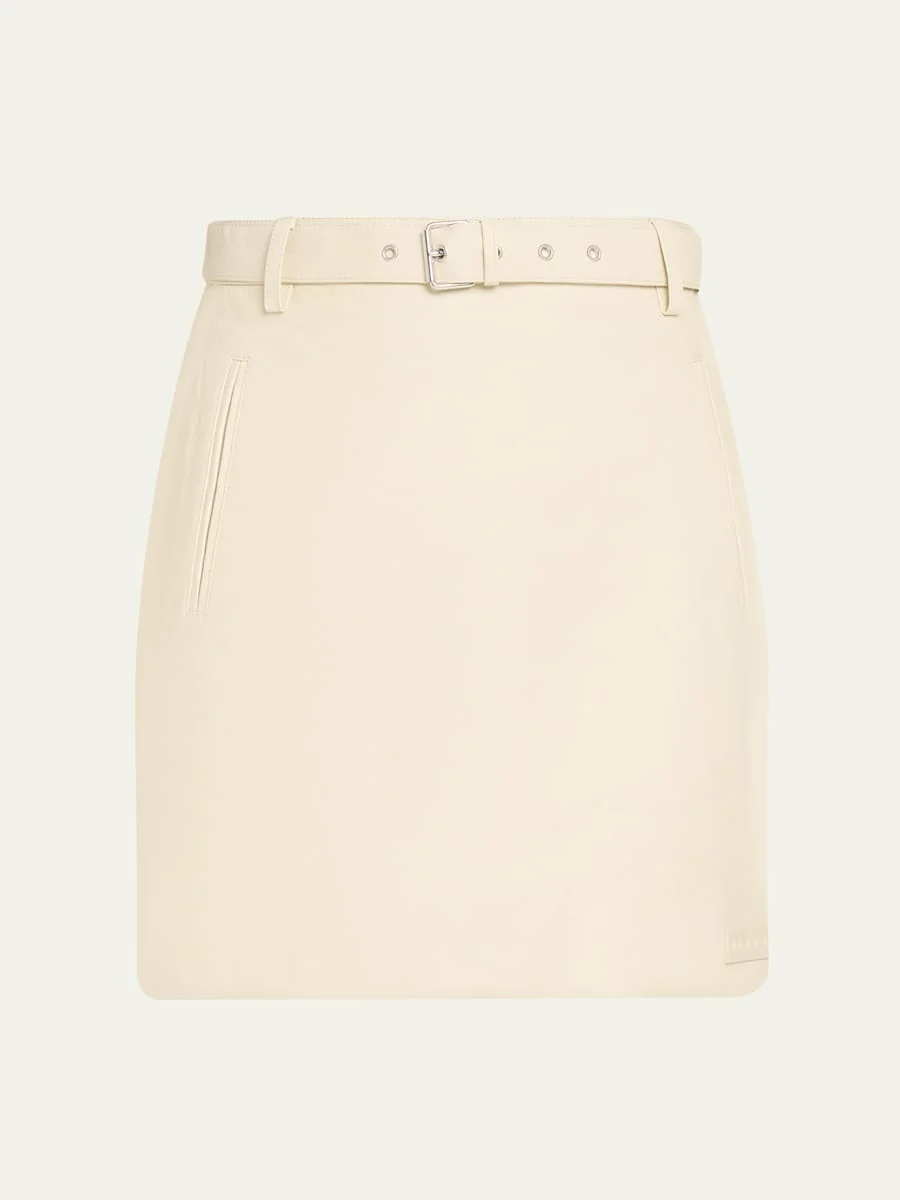 Adorned with tricolor stripes down the sides, this leather mini skirt from Marni is finished with a matching belt to conceal the zip closure on the back. Belted waist Side welt pockets Pencil silhouette Hem falls abovetheknee Center back zip Leather Made in Italy SIZE amp; FITModel measurements: 5'10" tall Model is wearing a US size 4/Small