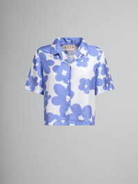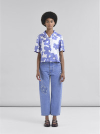 Silk twill short sleeved shirt printed all over with this season's Dillies motif. The regular fit has a straight cut hem, button up front and a bowling style collar that can be worn open or closed. The signature Marni Symbol is hand embroidered on the front. Made in Italy MODEL CAMA0615S0UTSG26DIB26 FIT The model is 5' 9''. The model is wearing size 40 IT. COMPOSITION Primary Fabric: 100% Silk Woven