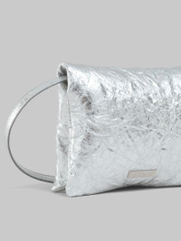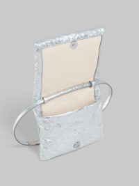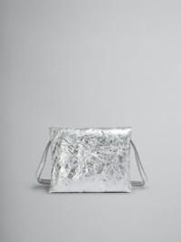 Mini Prisma pouch crafted from wrinkled metallic puffy leather. Styled with a matching shoulder strap and flap closure. Lined in blended cotton fabric. Metal Marni logo plaque on the front. Made in Italy DETAILS COMPOSITION Body: 100% Calf Leather - Lining: 55% Cotton 45% Polyurethane - Metallic Parts: 100% Brass - Padding: 100% Polyester
