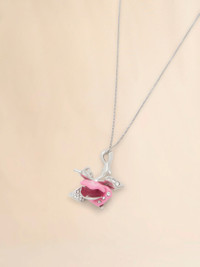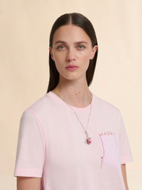 Thin chain necklace with pink enameled tulip pendant created in collaboration with the artists Slawn and Soldier. Adorned with shimmering rhinestones. Lobster clasp. Made in Italy MODEL COMV0554A0P652700C30