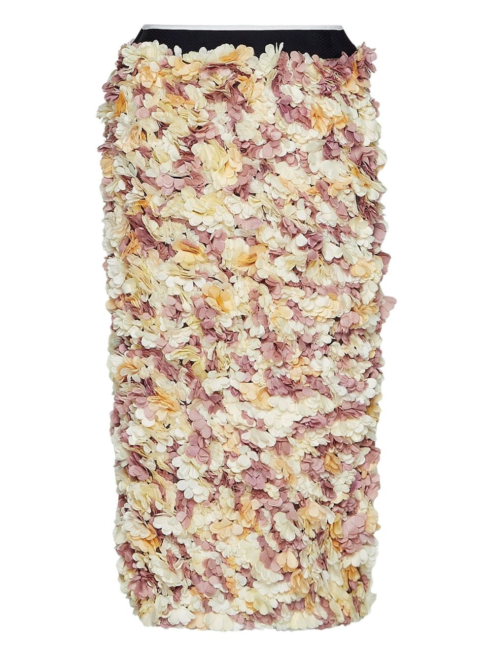 flower-embellished midi skirt Highlights - Pink - Flower embellishment - Midi length - Close-fitting - Textured - High waist Imported Composition Fabric 100%
