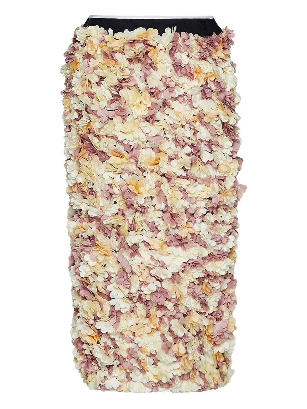 flower-embellished midi skirt Highlights - Pink - Flower embellishment - Midi length - Close-fitting - Textured - High waist Imported Composition Fabric 100% Washing instructions Read Manufacturer Guidelines