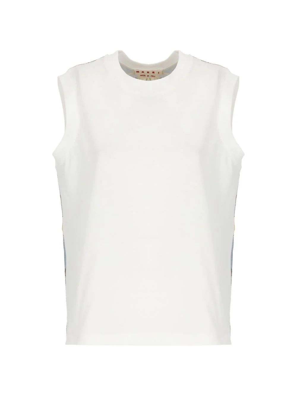 sleeveless T-shirt Highlights - White - Sleeveless - Round neck Made in Italy Composition Cotton 100%, Viscose 100% Washing instructions Read Manufacturer Guidelines