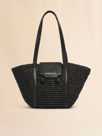 SMALL BLACK RAFFIA-EFFECT TRUNKAROO BEACH BAG