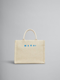 East-West small tote bag in weaved fabric. Two sets of handles in cotton ribbon, short for hand carry, long for shoulder carry. Fabric Lining with zipped pocket. Palladium Hardware. Embroidered Marni logo on the front. Made in Italy MODEL SHMP0077U0P386000W11 COMPOSITION Body: 52% Cotton 48% Polyamide-Nylon - Contrast: 97% Cotton 3% Polyester - Lining: 100% Cotton - Contrast: 100% Calf Leather - Metallic Parts: 100% Brass