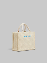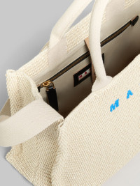 WHITE RAFFIA-EFFECT SMALL TOTE BAG