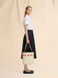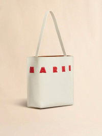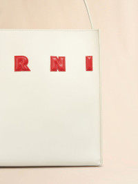 Museo hobo bag crafted from smooth calfskin leather. Small size. Embellished with contrast puffy Marni patches. Open design with single top handle. Lined interior with zip pocket and embroidered logo patch. Made in Italy MODEL SHMP0111U0P6483ZO721 COMPOSITION Body: 100% Calf Leather - Inside: 100% Calf Leather - Lining: 95% Polyester 5% Polyurethane - Metallic Parts: 100% Brass - Metallic Parts: 100% Zama