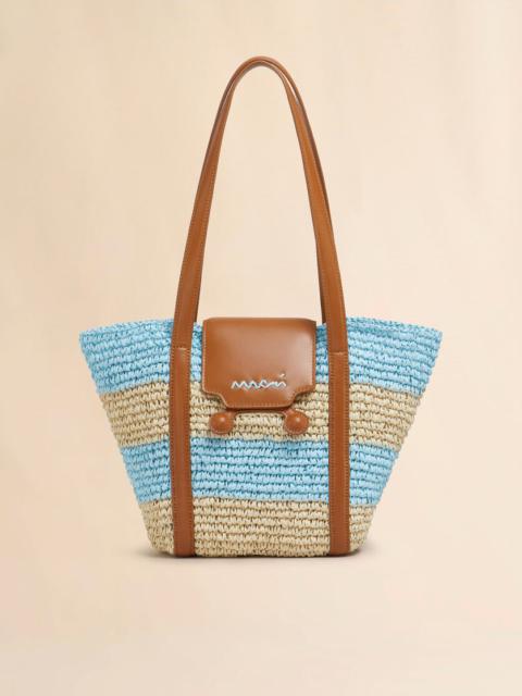 Trunkaroo beach tote made from woven raffia-effect fabric. Small size. Contrast maxi stripes. Leather handles and leather flap with hand-stitched Marni Symbol in the same colour as the stripes. MODEL SHMP0117U0P8309ZO933 COMPOSITION Body: 100% Paper - Contrast: 100% Calf Leather - Contrast: 100% Paper