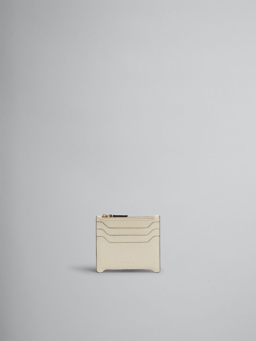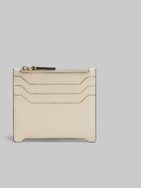 Trunkaroo card case crafted from smooth calfskin leather. Three card slots. Central zip compartment. Embossed Marni logo on the front. Made in Italy MODEL PFMO0112U0P694800W12 COMPOSITION Body: 100% Calf Leather - Lining: 100% Viscose-Rayon - Metallic Parts: 100% Brass - Metallic Parts: 100% Zama
