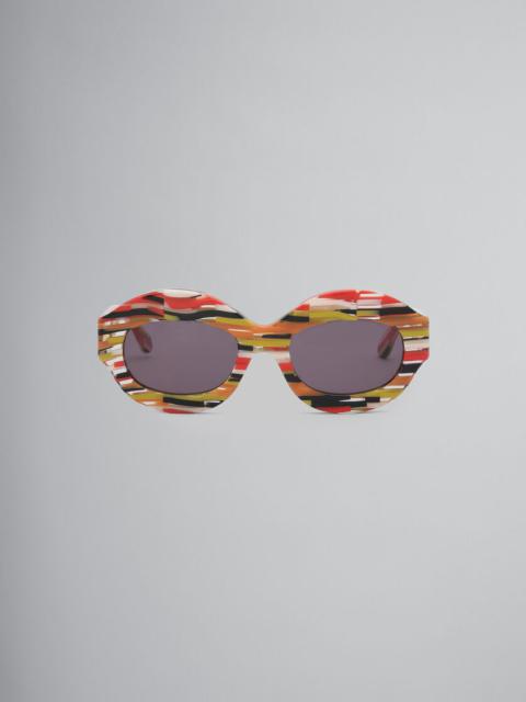 Ik Kil Cenote sunglasses, crafted from acetate with a natural-inspired patterned finish. Sleek oval silhouette. Embellished with gold metal Marni lettering on the temple. Made in Italy DETAILS COMPOSITION Material: 100% Acetate