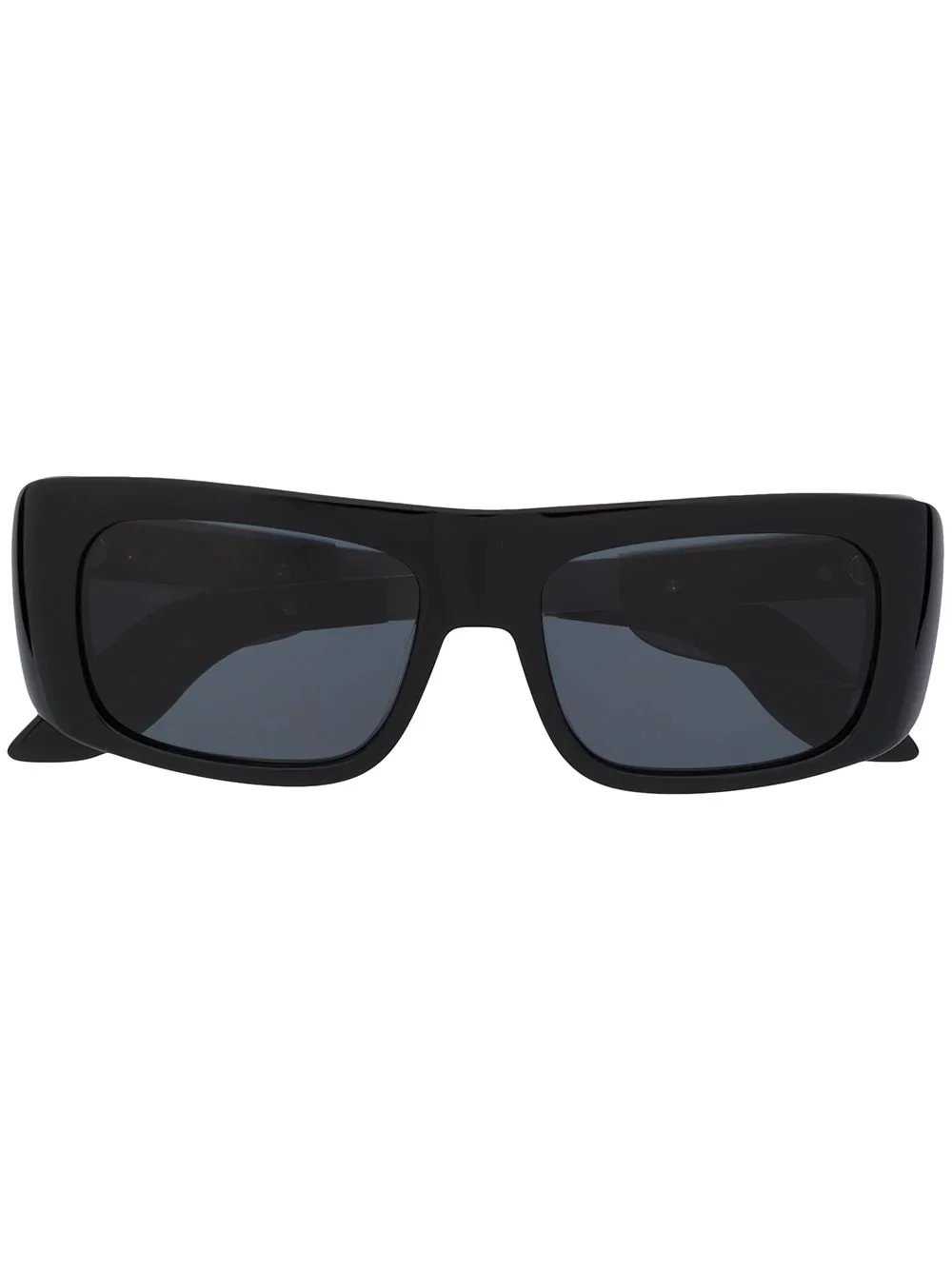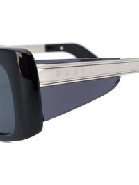square frame sunglasses Black acetate and metal square frame sunglasses from Marni Eyewear featuring dark tinted lenses, a brand logo on external arm and straight arms with angled tips. This item comes with a protective case. Made in Italy Composition Acetate 100%, Metal (Other) 100% SIZE & FIT Measurement Arm Length 5.9 in(15 cm) Bridge Width 0.66 in(1.7 cm) Lens Diameter 2.12 in(5.4 cm) Total Width 5.7 in(14.5 cm)