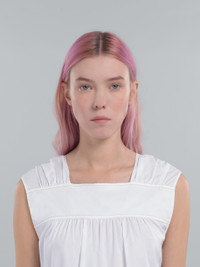 Gathered sleeveless top with square neckline. Decorative stitching on the front. Regular fit. Made in Italy. DETAILS COMPOSITION Primary Fabric: 100% Cotton Woven
