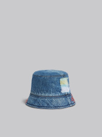 BLUE ORGANIC DENIM BUCKET HAT WITH MOHAIR PATCHES