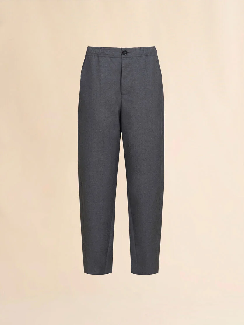 Tropical wool ankle-length trousers cut to a relaxed fit with elasticated waist and straight leg. Side pockets and welt pockets on the back. Zip and button closure. Marni Symbol hand embroidered on the side. MODEL PAMA0482U0TW83900N60 FIT The model is 5' 9''. The model is wearing size 40 IT. COMPOSITION Primary Fabric: 100% Virgin Wool Woven - Lining: 100% Viscose-Rayon Woven