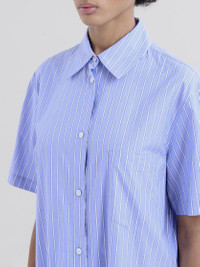 BLUE COTTON POPLIN STRIPED SHIRT DRESS
