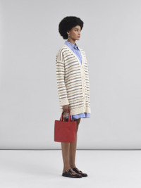 Short shirt dress cut from yarn dyed cotton poplin with a regimental pin stripe all over. The regular fit features a shirt collar, short sleeves and a flared skirt with godet front. Button up front with applied breast pocket and Marni Symbol hand embroidered on the left shoulder. The main fabric in this garment is made using at least 50% of highly selected organic cotton, grown using farming practices that support biodiversity and healthy ecosystems. Made in Italy MODEL ABMA1379S0UTC455STB61 FIT The model is 5' 9''. The model is wearing size 40 IT. COMPOSITION Primary Fabric: 100% Cotton Woven
