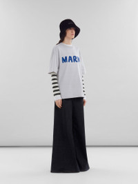 Long-sleeved jumper with horizontal stripes, knitted from a light combination of virgin wool and brushed mohair. Regular fit with side slits and crew neck. MODEL GCMD0544Q0UFW617RGW05 FIT The model is 5' 10''. The model is wearing size 40 IT. COMPOSITION Primary Fabric: 81% Wool 12% Mohair 7% Polyamide-Nylon - Secondary Fabric: 100% Wool