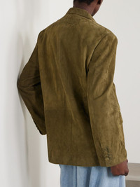 Marni's jacket has a loose, borrowed-from-the-boys fit that makes it feel so effortlessly cool. It's made from soft suede and fitted with internal shoulder pads. Leave it open over a graphic tee and jeans. Size & Fit - Fits true to size, take your normal size - Intended for a loose fit - Internal shoulder pads - Supple, non-stretchy suede - Model is 177cm/ 5'10" and is wearing an IT 40 Model measurements: - Bust: 80cm/ 31.5" - Waist: 60cm/ 23.5" - Hip: 89cm/ 35" Details & Care - Army-green suede - Button fastenings through front - 100% leather; lining: 100% viscose - Fully lined - Specialist clean