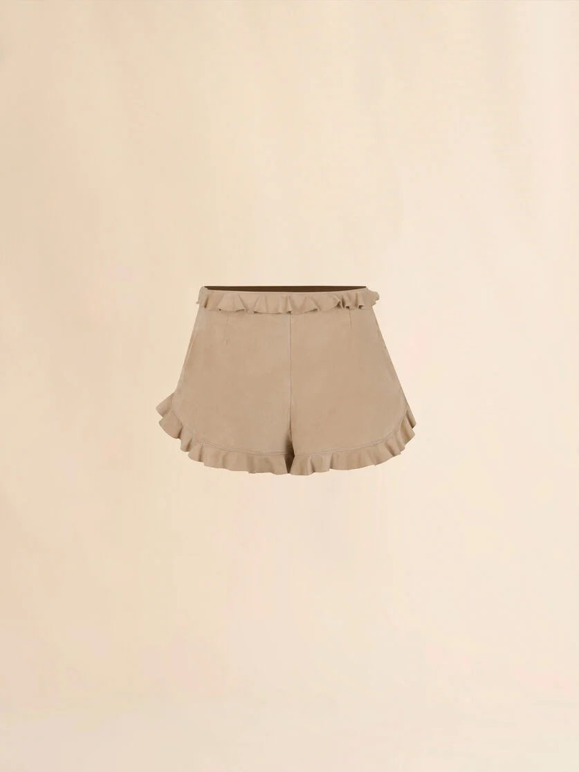 BEIGE SUEDE SHORTS WITH RUFFLE