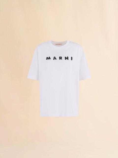 WHITE JERSEY COTTON T-SHIRT WITH MARNI SCRIBBLED LOGO