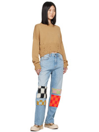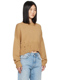 Knit cotton sweater. Distressing throughout. · Rib knit crewneck, hem, and cuffs · Hand-stitched logo at collar · Cropped hem · Dropped shoulders Supplier color: Nomad