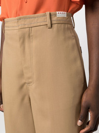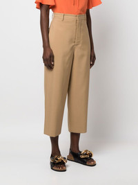 cropped-leg trousers Highlights - Beige - Virgin wool - High waist - Belt loops - Front button and zip fastening - Two side slash pockets - Two rear patch pockets - Tapered leg - Ankle-length Made in Italy Composition Lining: Viscose 100% Outer: Virgin Wool 100% SIZE & FIT Model measurements Height 5 ft 10 in(1.77 m) Bust/Chest 32.28 in(82 cm) Hips 35.03 in(89 cm) Waist 25.19 in(64 cm) FittingInformation This piece fits true to size. We recommend you get your regular size Designed to be fitted at the waist and hips, loose over the leg Made with a mid-weight non-stretch fabric Washing instructions Dry Clean Only