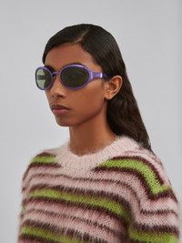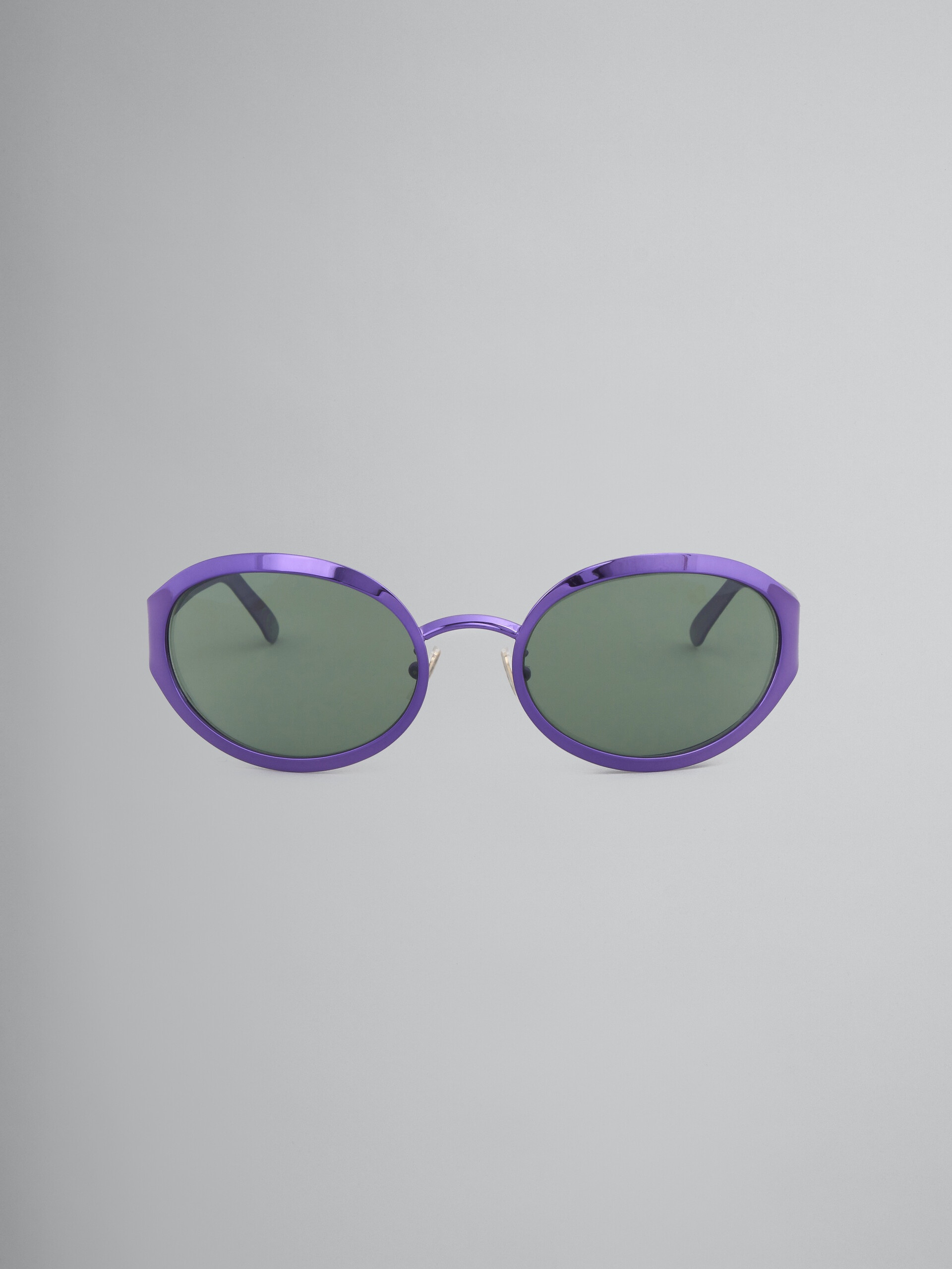 To-Sua sunglasses featuring a rounded shape in violet satin-finish metal. Temples with Marni logo. Adjustable noise pads. Green lenses. Made in Italy MODEL EWME0044A0H361002LXE COMPOSITION Primary Fabric: 60% Acetate 40% Nylon