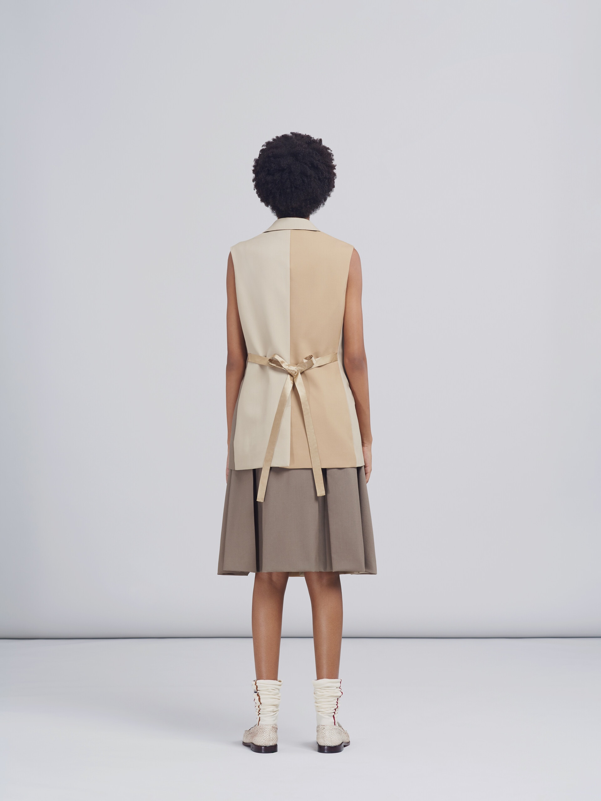 Tropical wool vest. Lapels; flap and chest pockets. Single-breasted; 3-button closure; lined. Ties at the back; colourblock. Made in Italy. DETAILS COMPOSITION Primary Fabric: 100% Virgin Wool Woven - Secondary Fabric: 100% Virgin Wool Woven - Third Fabric: 100% Virgin Wool Woven - Fourth Fabric: 100% Viscose-Rayon Woven