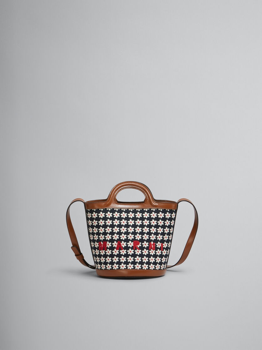 Tropicalia Bucket Bag made from cotton canvas with daisy print. Small size. Embroidered Marni logo. Inner drawstring liner. Leather base, shoulder strap and handles. Snap hook closure. Fabric lining. Made in Italy MODEL SCMP0056U6P7944ZO823 COMPOSITION Body: 100% Cotton - Contrast: 100% Calf Leather - Contrast: 100% Calf Leather - Lining: 95% Cotton 5% Acrylic - Metallic Parts: 100% Brass